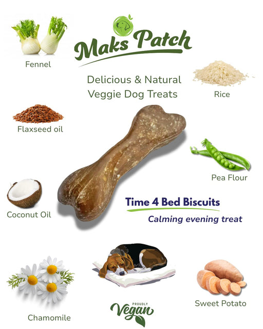 View full detailsMaks'Patch “Bed-Time” Biscuits 🌙 Calming Vegan Dog Treats with Coconut, Chamomile, Fennel & Flax seed Oil. Natural Vegan dog treats....wind d...