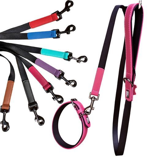 NEW DESIGN. Miro & Makauri 'Milford' Leather/Nylon Leads - 7 Colours