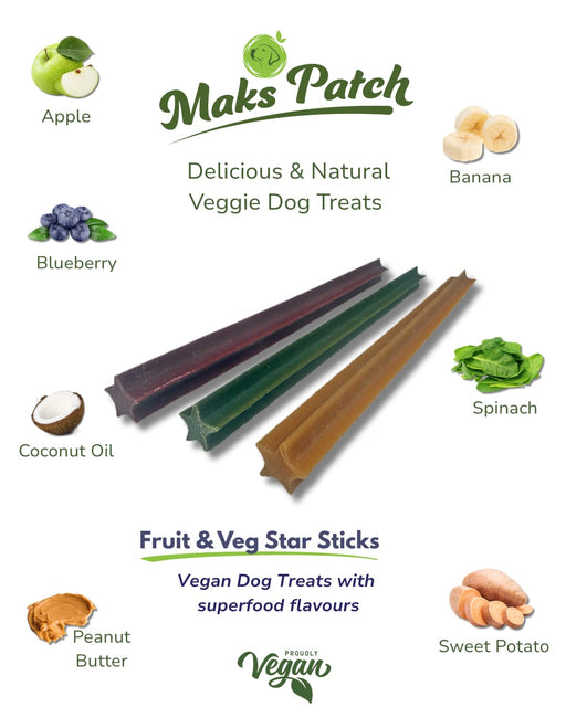 Maks'PatchMaks'Patch Vegan 'Fruit & Veg' Star-Sticks Nutritious, Tasty, and Wholesome Dog Chews Made with wholesome fruits and vegetables plus added c...
